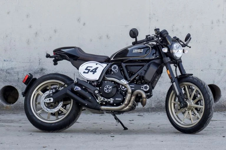 The Ducati Scrambler Cafe Racer (17-20) has a 'P' kit status.